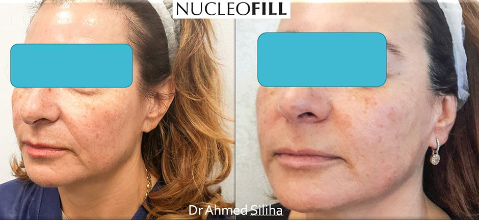 To najnowsze osiągnięcie medycyny estetycznej, które pozwala uzyskać efekt wyraźnego odmłodzenia na długo. Tajemnica jego skuteczności kryje się w polinukleotydach czyli polimerach nukleotydów. To małe fragmenty kwasów nukleinowych DNA i RNA, występujące naturalnie we wszystkich organizmach. Są one całkowite biokompatybilne z organizmem ludzkim. Produkt działa na poziomie komórkowym i dlatego zapewnia uzyskanie całkowicie naturalnego efektu. W wyniku zabiegu skóra staje się napięta, nawilżona, jędrna i zyskuje zdrowy wygląd. Preparat działa na trzech poziomach: prowadzi do wytworzenia kolagenu typu I i elastyny, co powoduje zagęszczenie skóry i uzyskanie efektu delikatnego liftingu. Ponadto polinukleotydy działają antyoksydacyjnie, dzięki czemu skóra staje się promienna i rozjaśniona. Nucloefill wiąże też wodę zapewniając tym samym długotrwałe nawilżenie.